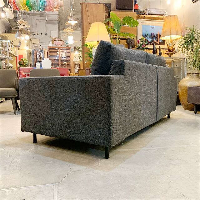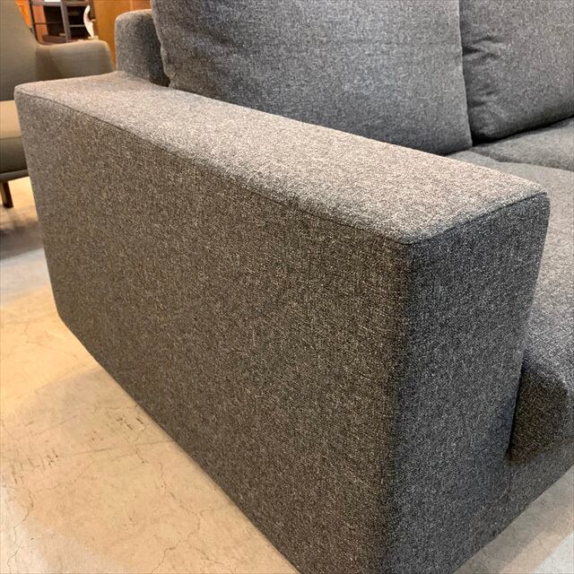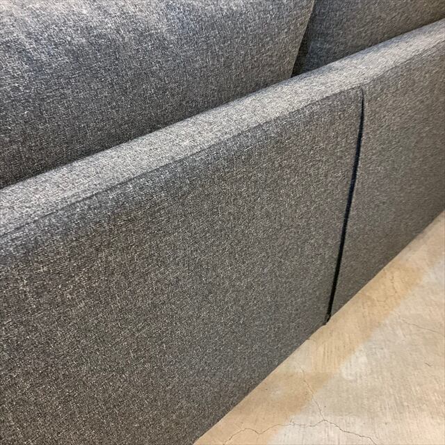 個人の生活に寄り添うインテリアメーカーケユカのボックスソファ2シーターを仕入れて来ました。シンプルでモダンなデザイン。ゆったりとしたサイズの肘掛けにふかふかなクッションは快適性の高い座り心地です。ダークグレーの織りが粗めの高級感のあるモダンな印象です。肘掛けにクッションを置いて寝そべるのもいいかもしれません。ベージュの織りが粗めの替えカバーもお付け致します。