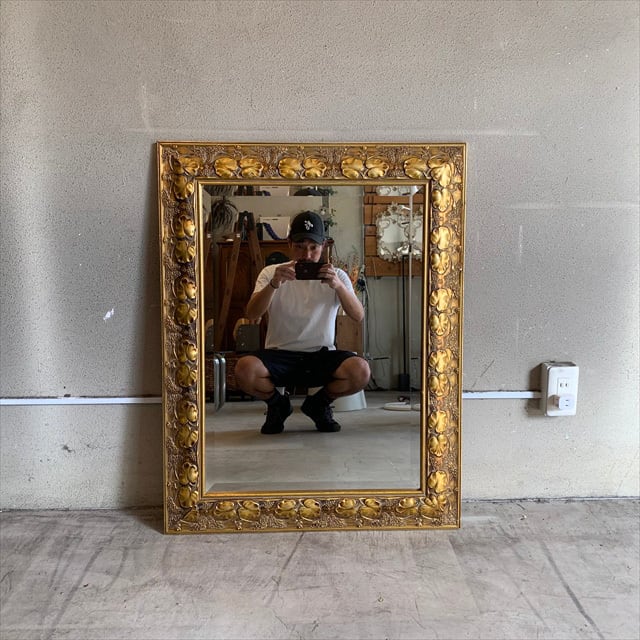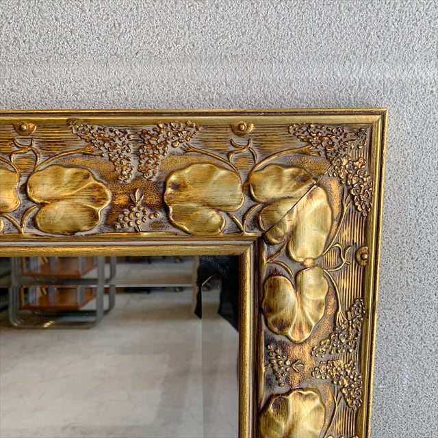 イタリア製のゴールドカラーウォールミラーを仕入れて来ました。木材に葉や枝の彫りを入れたデザインにゴールドカラーを塗装したフレームの壁掛け鏡です。光に触れるとキラキラと豪華な雰囲気となります。サイズも良く床に置いて壁に立て掛けて使うのもありじゃないかと思います。
