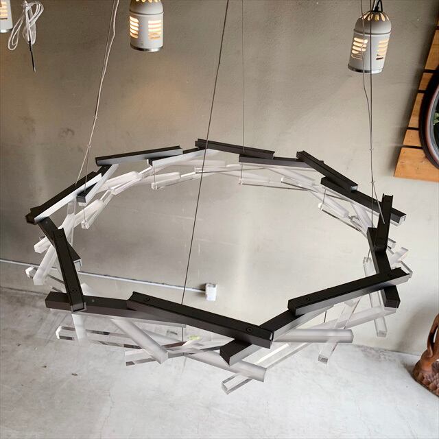 山田照明のローリアLEDペンダントライトを2個仕入れて来ました。型番はPD-2566-Lになります。LEDの特徴を活かしたスリムなフォルムの照明から白熱灯の様にやわらかな光が部屋に広がります。繊細で透明感のあるデザインがとても素敵で枝や葉でつくるリースのようでそこからもれる太陽の光のようなイメージですね。現代的なシャンデリアとも言えるかと思います。高さは35cmから120cmまで調整可能のようです。そこもまた良いですよね。シーンに合わせてお使い下さいませ。目立つキズや大きな汚れなく綺麗な状態なのもオススメポイントとなります。本体自体は軽く、ベース部の重さくらいなので天井のシーリング次第では賃貸でも取り付け可能かと思います。