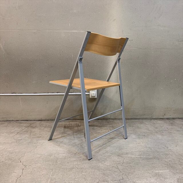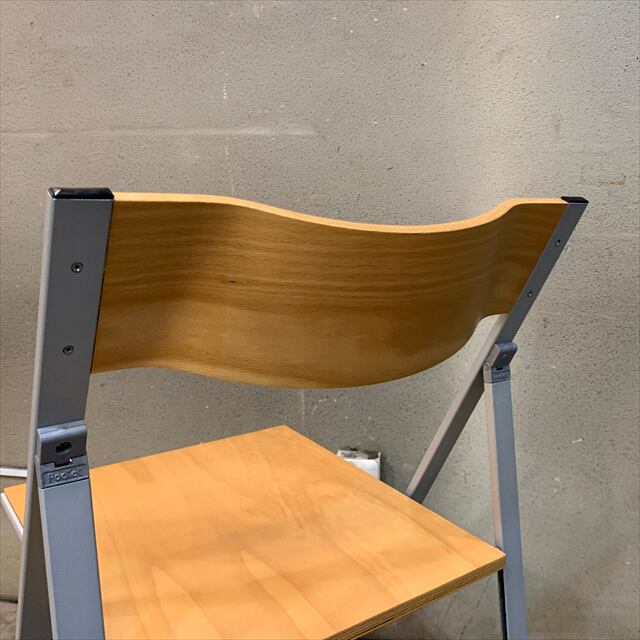 イタリアの家具メーカーArrmet(アルメット)にて製造されるドイツ人デザイナーロビーカンタルッティによって1997年にデザインされたポケットウッドチェアを5脚仕入れて来ました。折りたたみが出来るチェアなんですが、折りたたんだ状態での最薄部が3cmと超絶コンパクトなので少しの隙間があれば収納しておける便利な椅子になります。背もたれとシートはブナ材成形合板で背中とお尻の曲線に模られた快適性とフレームにスチールを使用した堅固性もありつつシルバー粉塗装を仕上げにすることで少しキラキラと光沢のある高級感などの特徴があります。コンランショップでは定番商品として選定されていたり、過去にはアルマーニやエトロ、ボッテガなんかでも使われていたようです。