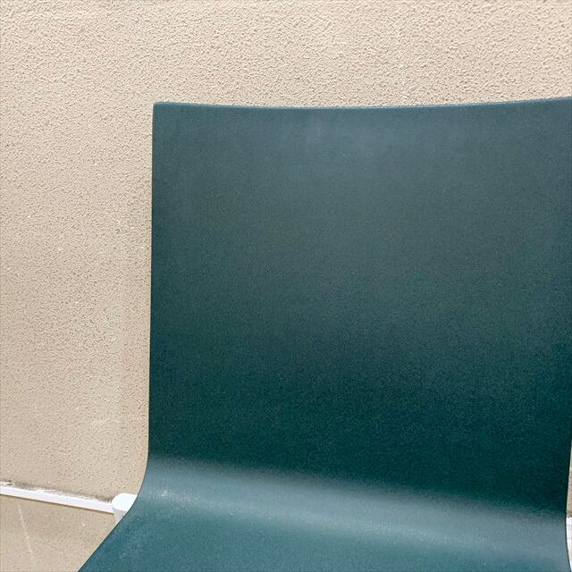 スイスの家具メーカーヴィトラにて現行にて取り扱いのゼロスリーチェアを5脚仕入れて来ました。マールテンヴァンセーヴェレンによってデザインされたチェア。脚は後面がスチールチューブで全面がパウダーコート仕上げ、シートシェルがスプリングを内蔵したフレキシブルなバックレストと弾力性のあるポリウレタンインテグラルフォーム。かなりシンプルなデザインですがスタイリッシュでソリッドな感じです。何より座り心地が快適なのが最大の特徴かと思います。シートはダークグリーンカラーです。