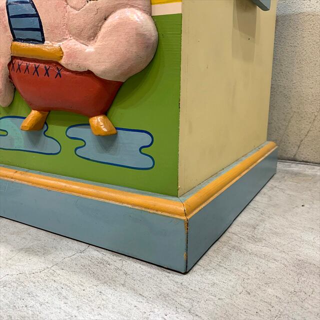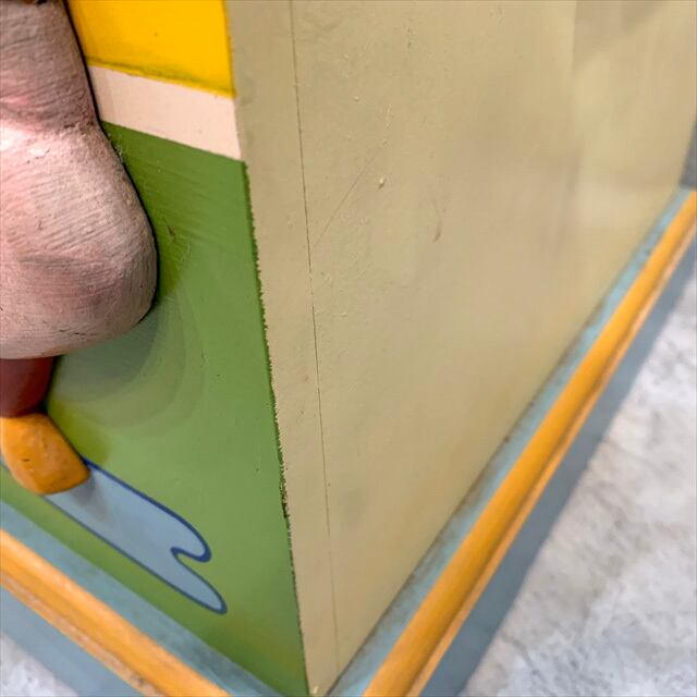 イギリスで購入し、日本に持ち帰ってきたというおもちゃを収納出来るヴィンテージのトイチェストを仕入れて来ました。ポップな色合いや可愛らしいデザイン、木彫りを塗装した装飾を取り付けた立体感もあるボックスになります。おもちゃ箱としてでもいいですし、リビングテーブルなんかにもお使い頂けるかと思います。