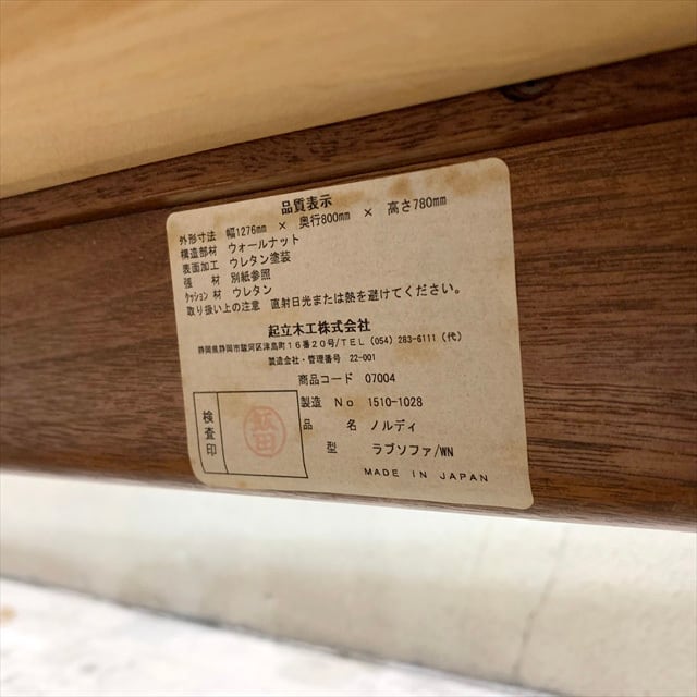 起立木工の北欧デザインで無垢材フレームをとても綺麗に仕上げたクッションには本革まで使用した高級なノルディシリーズのソファ2シーターを仕入れて来ました。起立木工は静岡県の家具メーカーでIDC大塚でも取り扱われており人気があります。シンプルなデザインでも職人の技術や素材の良さが光る一品です。横幅が128cmととてもコンパクトな2シーターなので一人暮らしにもオススメです。