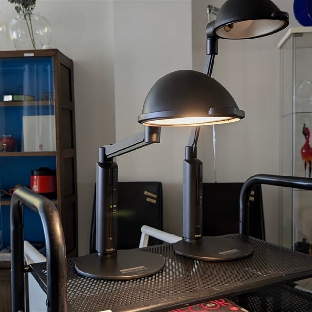 ヤマギワのバイオライトエクセルブラックを仕入れて来ました。国内外のデザイナーズやメーカー照明器具とオリジナル照明器具を取り扱うヤマギワ。こちらのバイオライトエクセルは現在は生産完了品となっているようです。目の疲労が少ない読書や卓上での作業に最適な光バイオライトと卓上照明に適してる非対称配光を組み合わせた実用性を考慮して生まれた商品。アームの上下左右動かせたりと利便性も抜群になります。デザインもとても良いです。こちらは1996年製となりますのでLEDも使えなくはないですが、照度調整が出来なくなります。