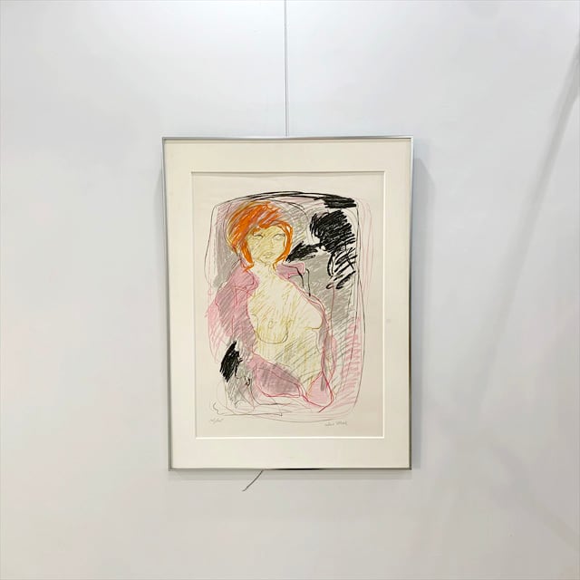 ロバートデルヴァルによって描かれたローレンス2の額装リトグラフを仕入れて来ました。1934年生まれのフランスの抽象的な作品を描く画家となります。こちらのローレンス2は70年代に描かれた作品かと思われます。ピンクのローブを纏ったオレンジ髪の派手な印象を受ける女性の背景や表情がどこか物悲しく作品として奥行や物語を感じられます。リト大判なのでインパクトがあり1枚でお部屋の印象が決まりそうですよね。