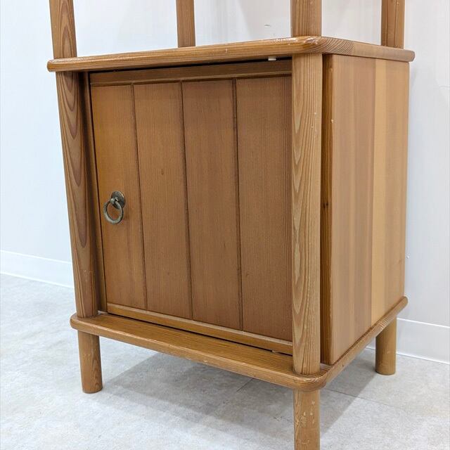 日本で80年代頃に作られたナジコのパイン材サイドキャビネットを仕入れてきました。ナジコはこういったコンパクトな家具を市場ではよく見かけますが柱にパイン材を使用したナチュラルでカントリースタイルでもあるサイドキャビネットはなかなか珍しいです。背板がベニヤを白く塗装したアクセントも良い。カラーとしてもインテリアに合わせやすく、小ぶりで使いやすいかとも思います。
