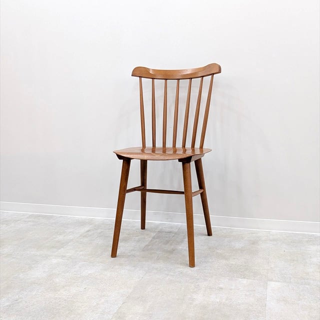 チェコの老舗曲木家具メーカーTONの人気商品。アイロニカチェア。ベントプライウッドの薄く座りやすい形状にされたシートにスピンドルバックを合わせたイギリスや北欧にある伝統的なデザイン。とても軽量で女性や子供でも使いやすいのも特徴となります。