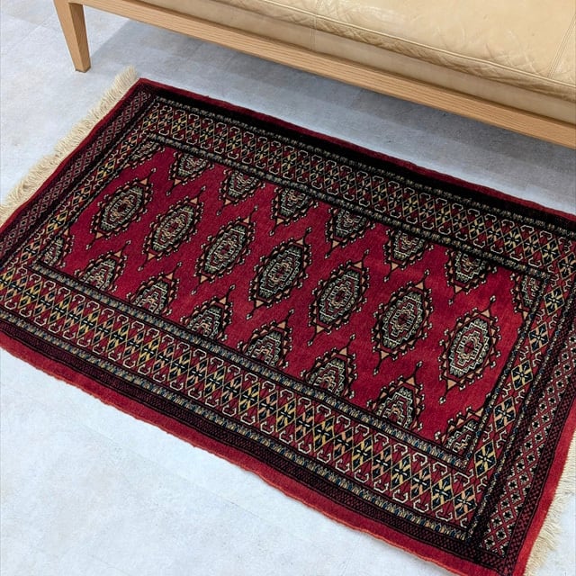 中央アジアからイラン北東部に住むトルコ系の遊牧民トルクメン族により手織りで作られる文化遺産でもある独特な伝統工芸品のトルクメントライバルラグ。