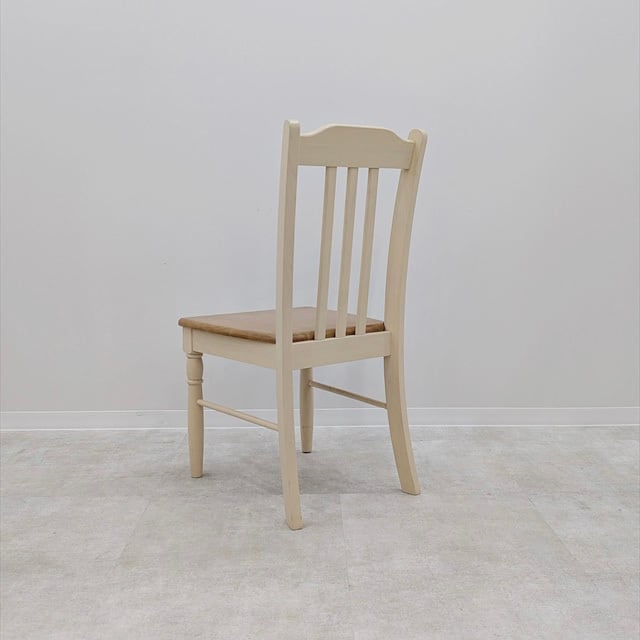 パイン材のような温かでナチュラルなカラーと薄めに白くペイントされたカラーとろくろ削り出しの脚部が特徴のカントリースタイル。