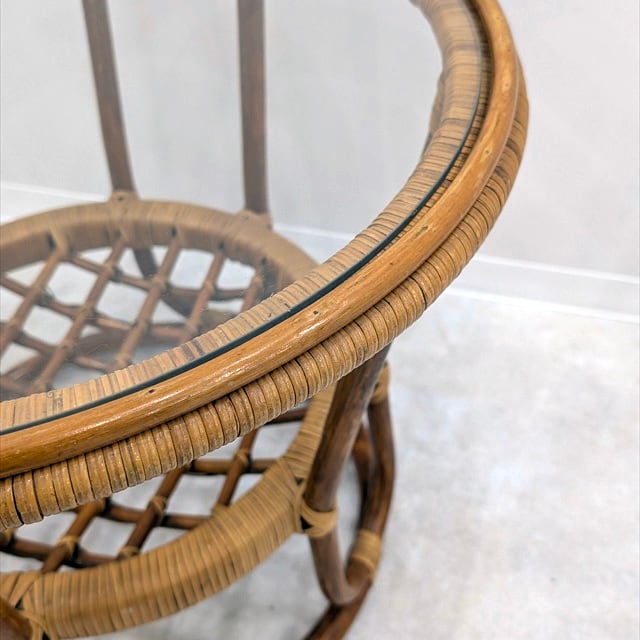 ヴィンテージラタンラウンドサイドテーブル